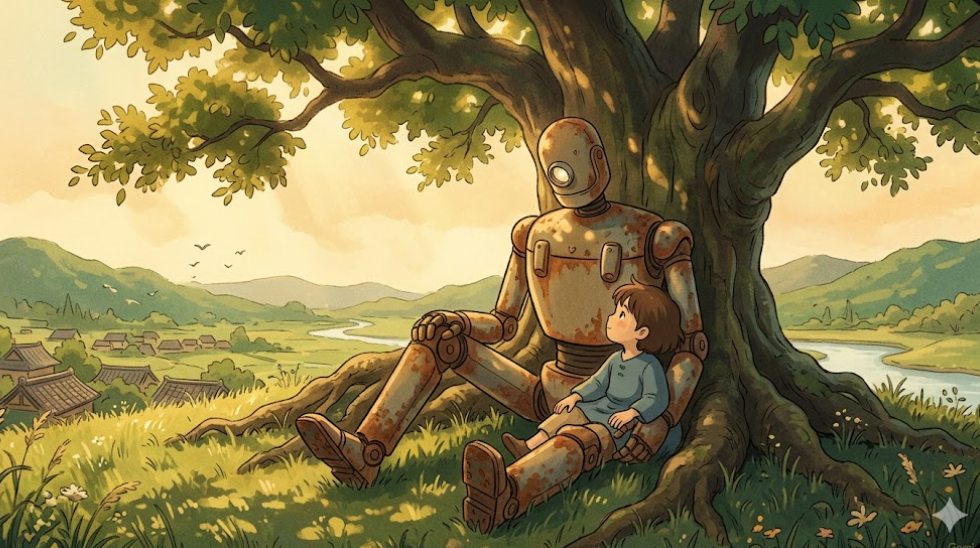 We have deliberately chosen a Ghibli-inspired framework because it is the most effective visual language for Human Alignment. While Western media often defaults to "Terminator" doom-mongering, the lineage of anime has spent decades showing us that a harmonious existence between machine and man is not only possible but beautiful.